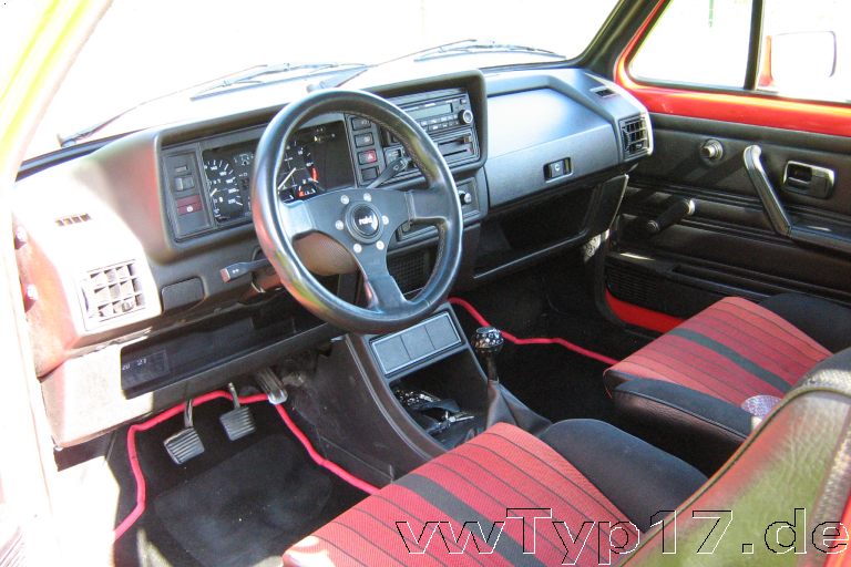 Das heißt: Velourteppich, hinten 2x Automatik und 1x Beckengurt und die normale GTI Beschriftung.