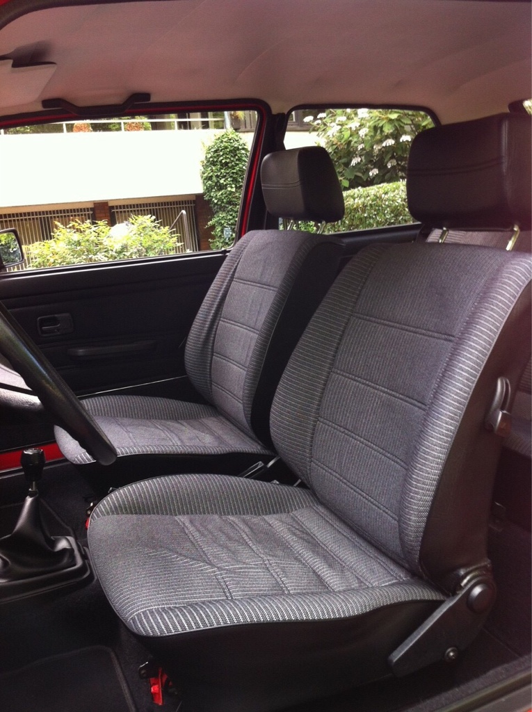 habe gestern den Fahrersitz aus meinem 83er GTI zum Sattler gebracht, weil die bekannten Stellen (Seitenwange und Lehnenwange Einstiegseite) durch sind. Neuen, schwarzen Stoff habe ich mit abgegeben (habe ich schon liegen gehabt) und dann bin ich zum abgemachten Preis (fast) umgefallen: Alltogether möchte er 170.-€ für seine Arbeit haben!!::o